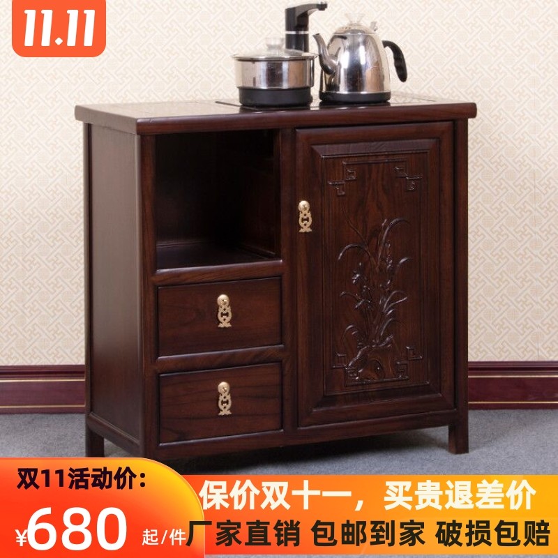 茶水柜实木茶边柜下置水桶家用饮水机客厅榆木茶叶柜办公室烧水柜热门设计联盟服务商