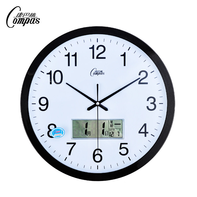 康巴丝静音挂钟卧室客厅办公室静音日历钟表家用万年历温度石英钟热门设计联盟服务商