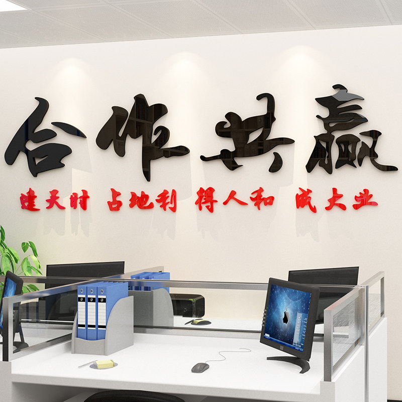 。合作共赢办公室装饰标语墙贴3d立体企业文化公司墙面贴纸前台布热门设计联盟服务商
